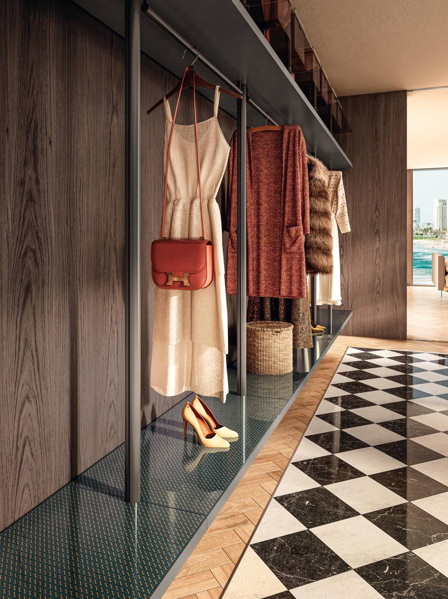 Pour terminer la gamme de dressing Air qui impressionne par ces modèles en lévitation grâce à des structures en verre trempé extraclair fumé grigio ou bronzo. Ses finitions précieuses attestent de l'excellence de la fabrication.