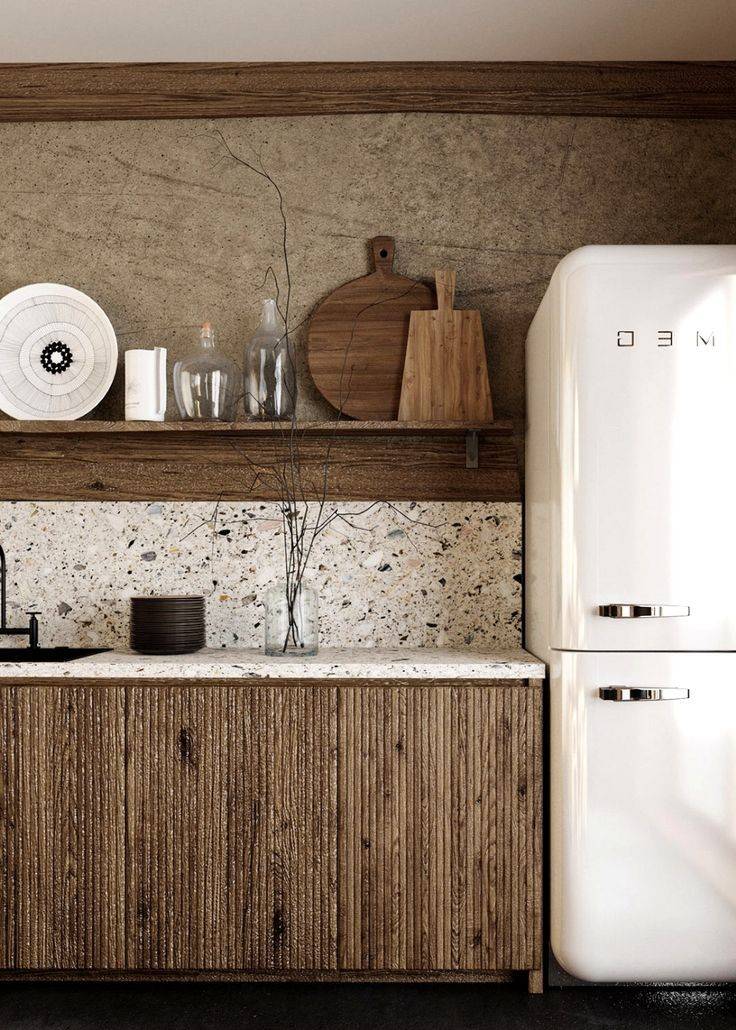En effet la cuisine met en avant le savoir-faire artisanal, la conception tend vers le minimaliste par sa simplicité et le matériau à l'état brut. Le modèle à effet cadre grâce aux joues et aux poignées revoient au caractère rustique de la cuisine.