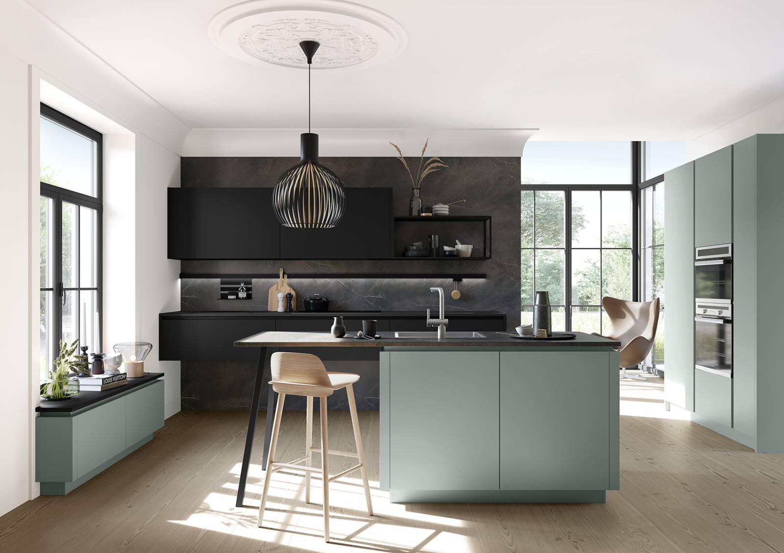 En collaboration avec des marques de cuisines contemporaines et haut de gamme, vous pourrez définir la couleur de chaque élément. Une large collection de matières et de couleurs est disponible sur échantillons en magasin. Plusieurs nuances de vert sont disponibles pour trouver la teinte qui vous conviendra le mieux.